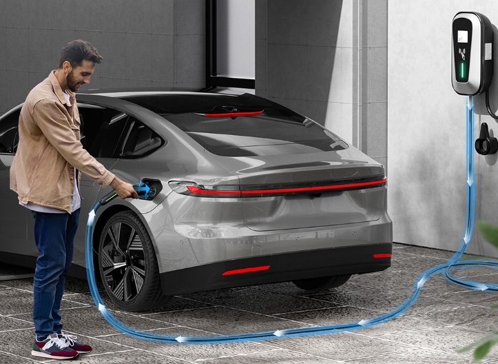 开始充满电。在家给电动汽车充电,节省时间。途中无需停下